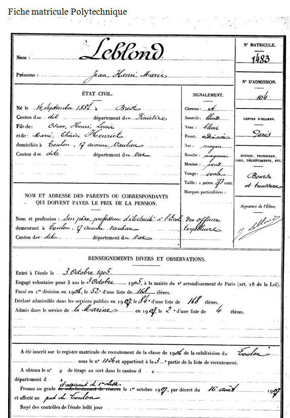 polytechnique en 1905, opte pour la Marine.