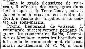 Commandant le sous-marin "HALBRONN", Escadrille de sous-marins du