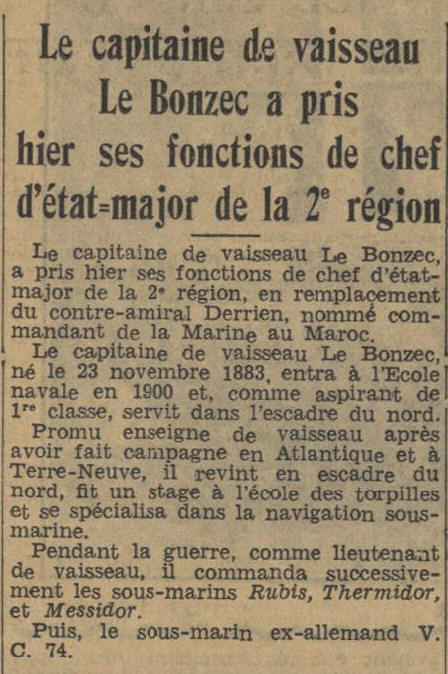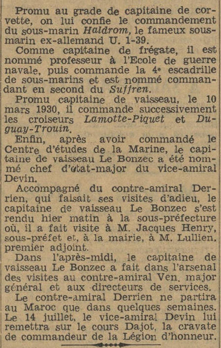 Extrait La Dépêche de Brest / 5 juillet 1938