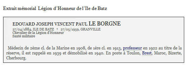 Né le 27 avril 1884 à l'Île de BATZ (Finistère) - Décédé le 27 mai