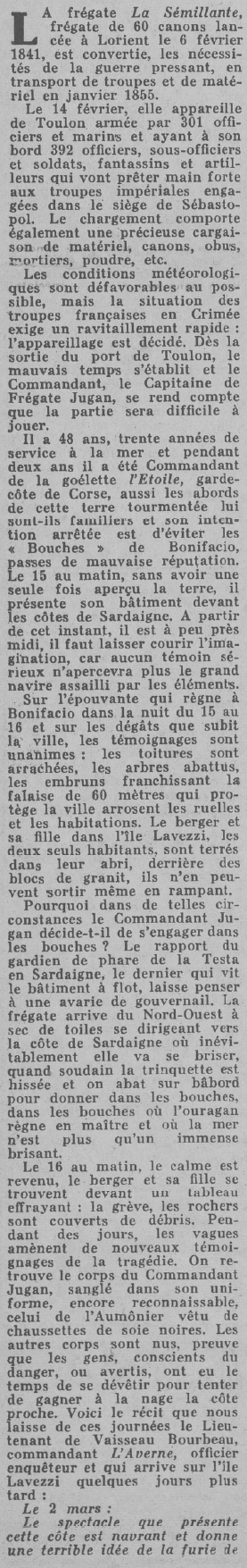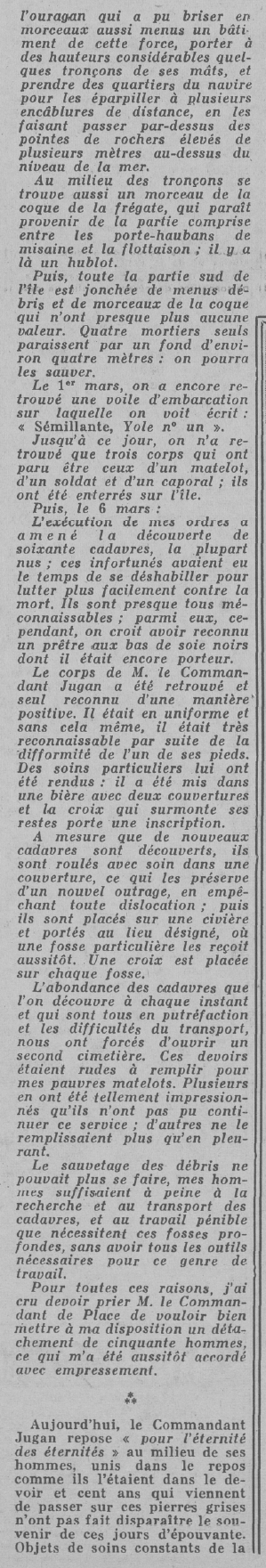 gouvernail, la Sémillante se fracasse sur les roches aux abords des