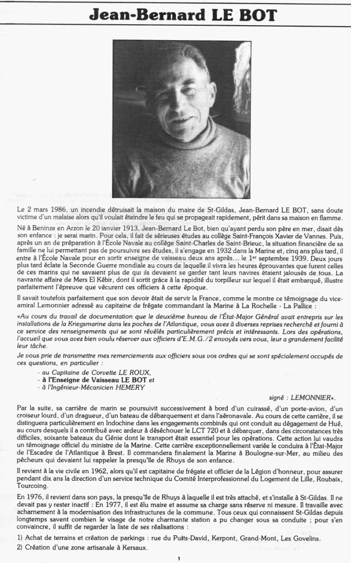 BENINZE (Morbihan) - Décédé le 2 mars 1986 à SAINT GILDAS de RHUYS