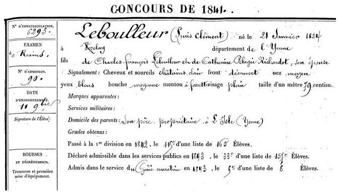 Sous ingénieur de 3ème classe le 1er octobre 1845