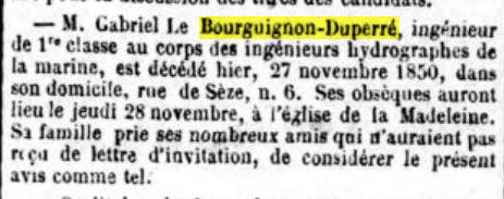 27 novembre 1850 à PARIS (rue de Sèze, Seine)