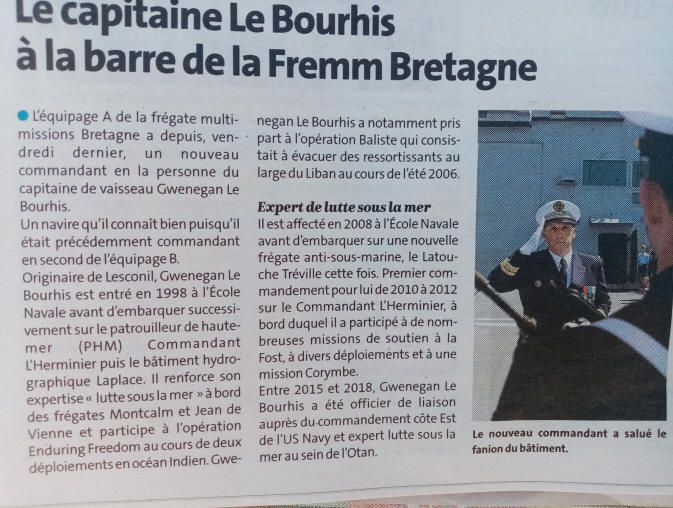 capitaine de vaisseau (CV) Gwenegan Le Bourhis comme nouveau