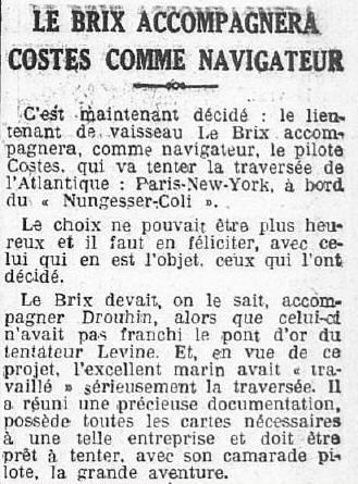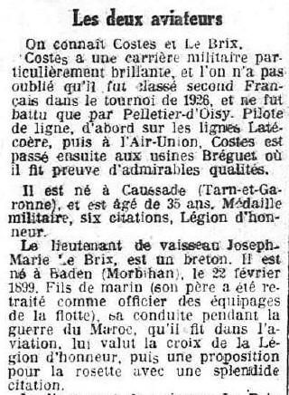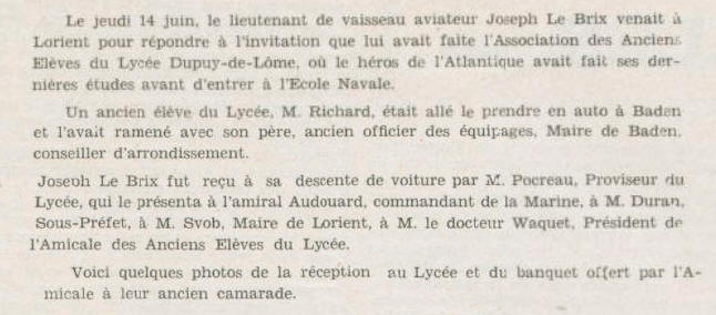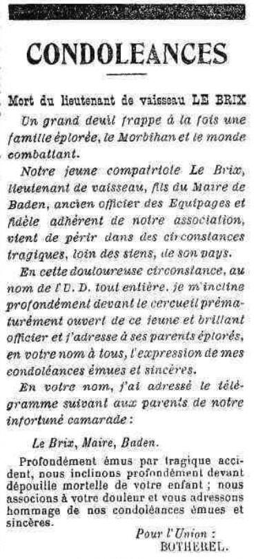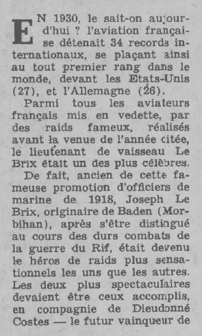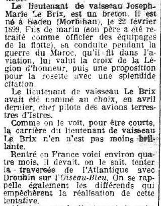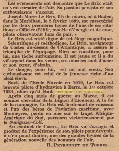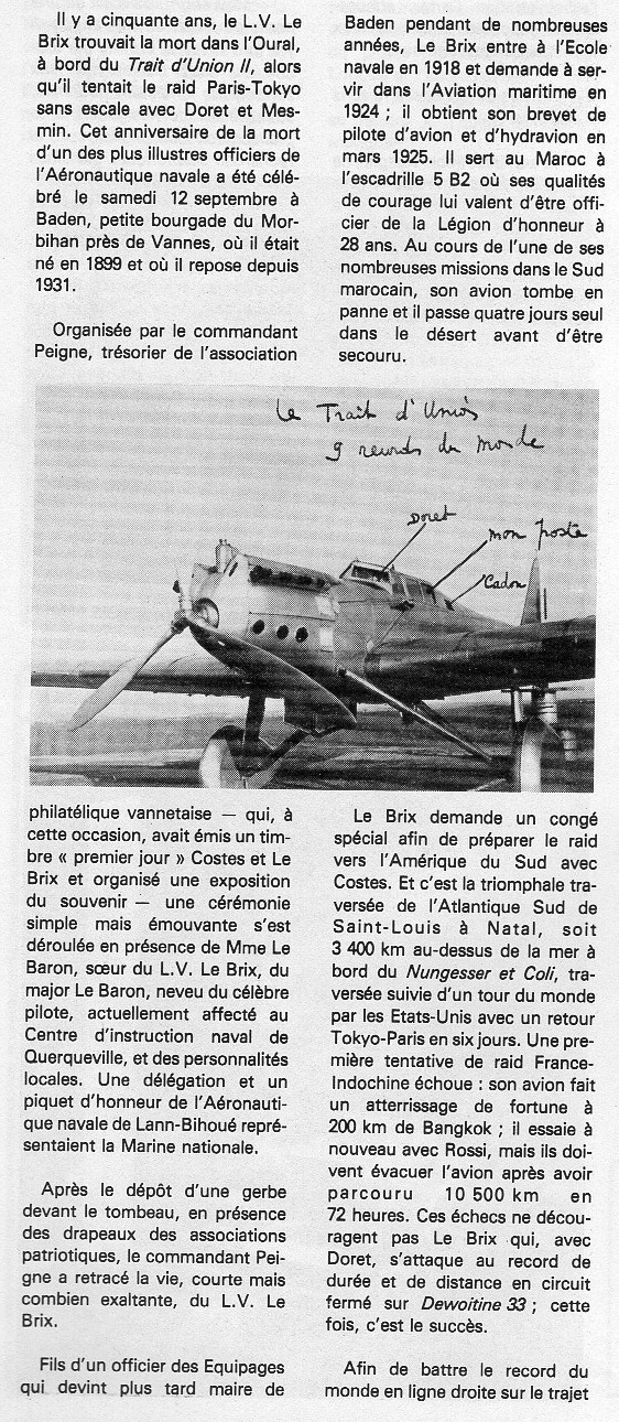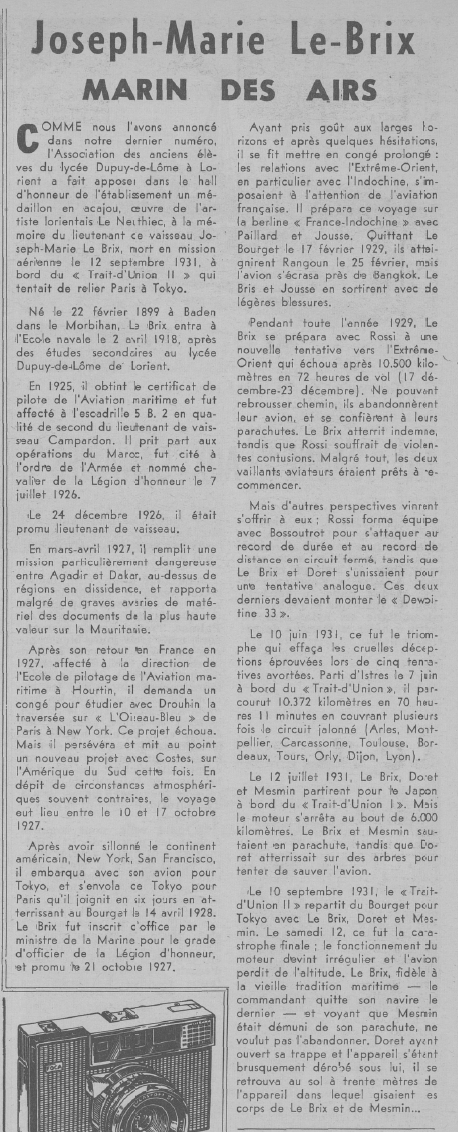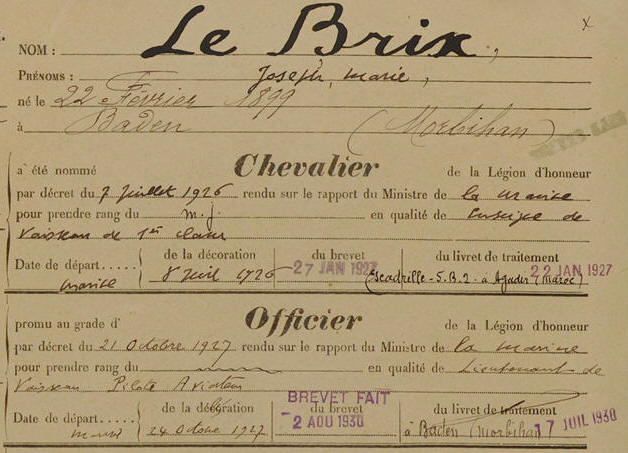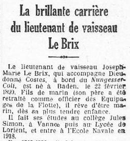 Le lieutenant de vaisseau joseph-marie Le Brix et le mécanicien René