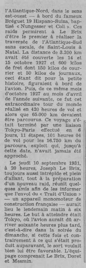 le même appareil, Le Brix, Doret et Mesmin tentent un raid vers