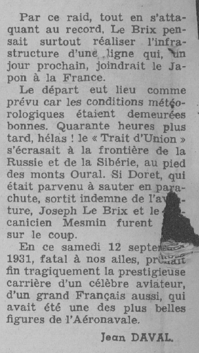s’empare de Le Brix, lors de la chute de son appareil dans l’Oural.