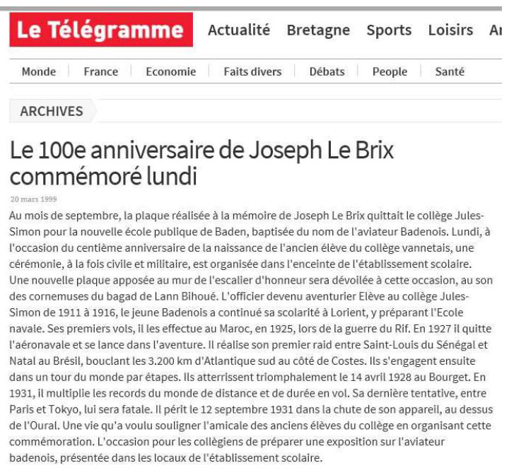 Joseph Le Brix donna son nom à une frégate de la Marine et à un