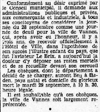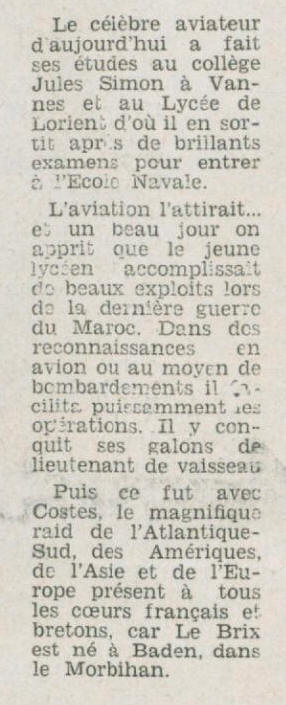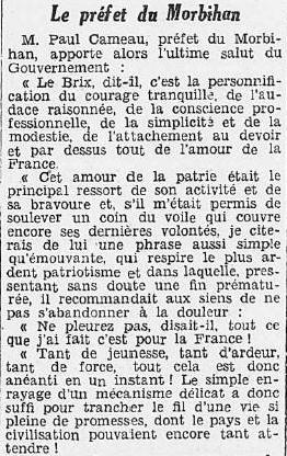Extrait Le Nouvelliste du Morbihan / 6 mai 1928
