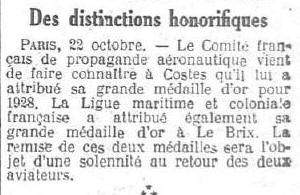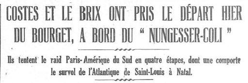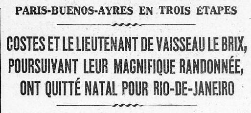 Dieudonné Costes, il relie Saint-Louis à Natal en octobre 1927