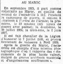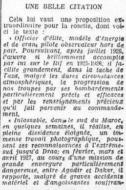 guerre du Rif de 1925 à 1927 et reçoit deux citations à l’ordre de