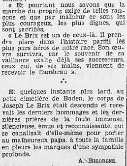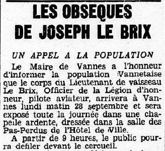 présence d'une foule considérable, puis Joseph Le Brix a été inhumé