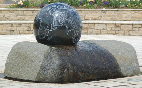 Devant la mairie de Baden, une mappemonde de pierre noire retrace