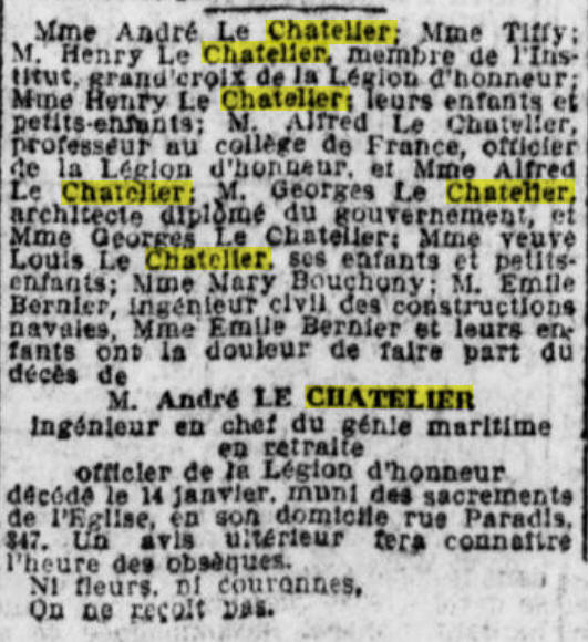 Fils de Louis Le Chatelier ancien inspecteur général des Mines,