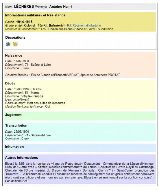 Né le 17 juin 1860 à CLUNY (Saône-et-Loire) - Décédé le 19 août 1916