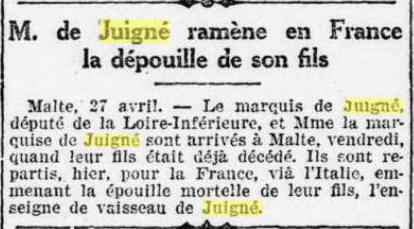 Marquis de JUIGNE et de Marie Madeleine Emma Eudoxie SCHNEIDER