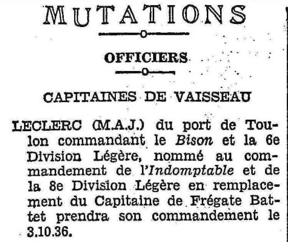 des Forces maritimes (1927-1929), puis Chef adjoint du Cabinet