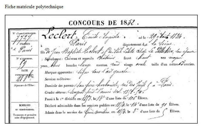 Entre à l'École polytechnique le 1er novembre 1852, avec un