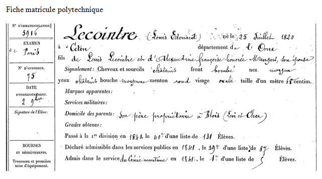 Sous-ingénieur de 1ère classe le 10 novembre 1848