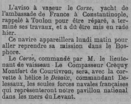"REINE-BLANCHE", Division navale du Levant (Cdt Raoul De MARQUESSAC).