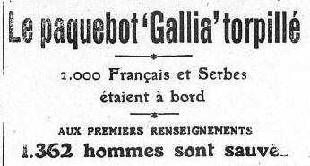 GALLIA par un sous-marin ennemi, de belles qualités d'initiative et