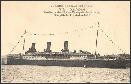 sur croiseur auxiliaire "GALLIA", il est cité à l'ordre de l'Armée