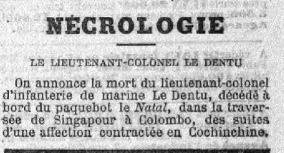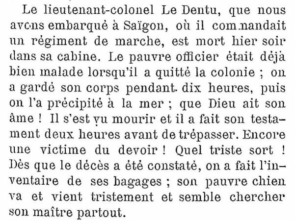 Le lieutenant-colonel Le Dentu, décédé à bord, entre Colombo et