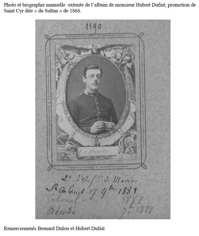 Sous-lieutenant d'Infanterie de Marine le 1er octobre 1868.