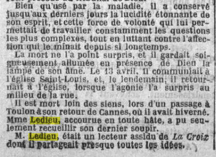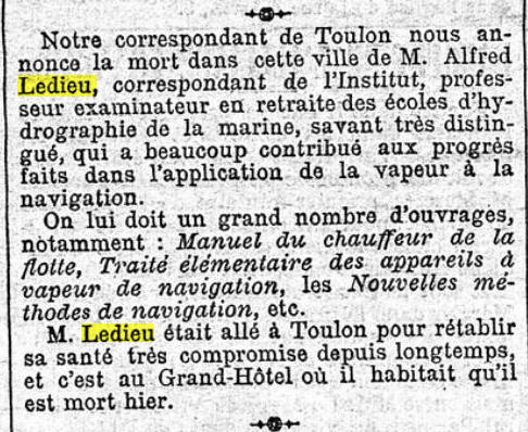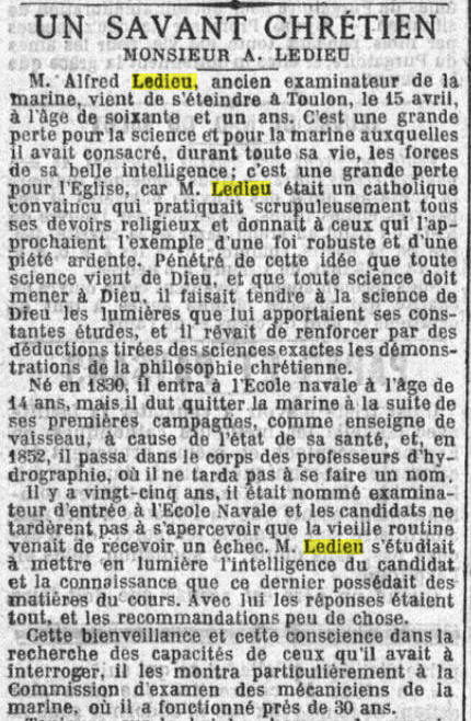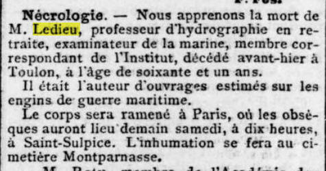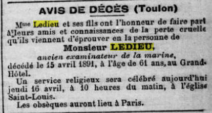 ABBEVILLE (Somme) - Décédé le 15 avril 1891 à TOULON (Var)