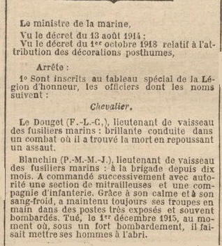 l'Armée navale : "Brillante conduite dans un combat où il a trouvé