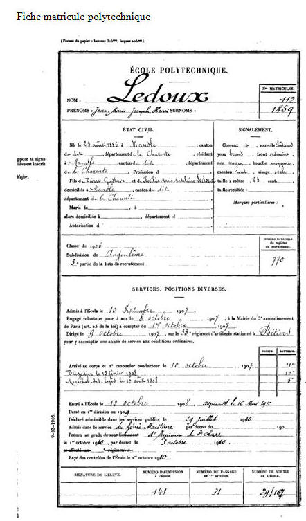 Élève de l'École polytechnique le 1er octobre 1907, opte pour le
