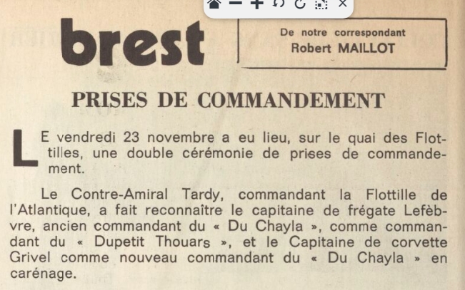 Commandant de l'escorteur d'escadre DUPETIT-THOUARS en décembre 1973