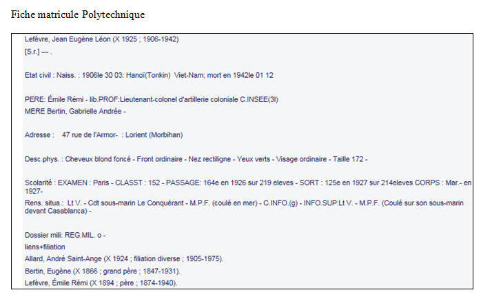 lieutenant de vaisseau Lefèvre grâce à l'héroïque énergie de son