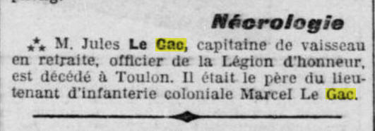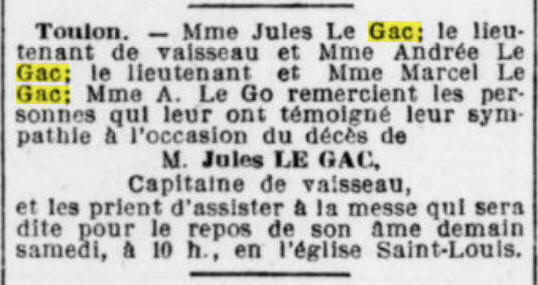 (Finistère) - Décédé le 21 février 1926 à TOULON (Var)