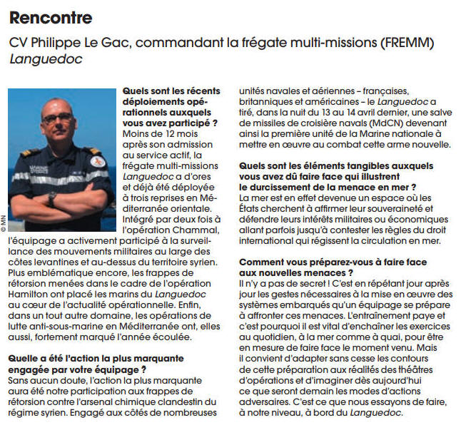 FREMM « Languedoc » (Toulon), à bord de laquelle il participe à
