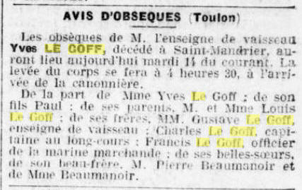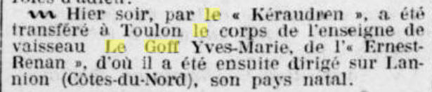 d'Armor) - Décédé le 12 janvier 1913 à SAINT MANDRIER sur MER (Var)