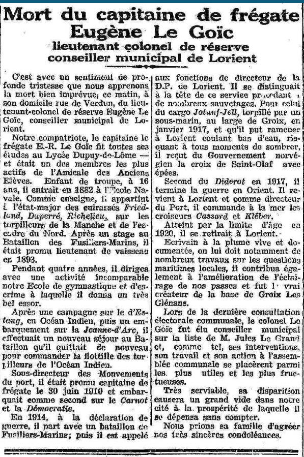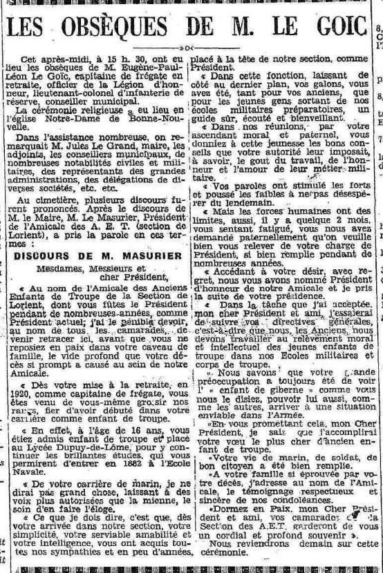 Extrait Le Nouvelliste du Morbihan / 2 avril 1932