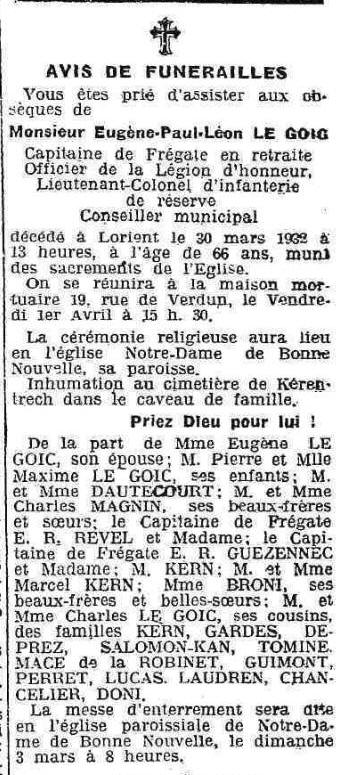 Extrait Le Nouvelliste du Morbihan / 1er avril 1932