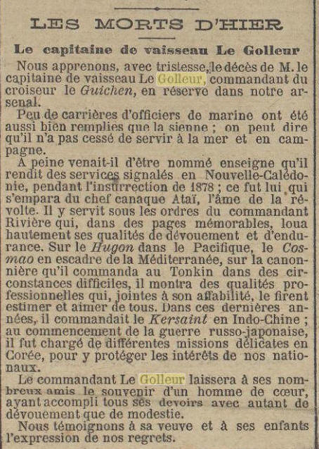 Entre dans la Marine en 1870.