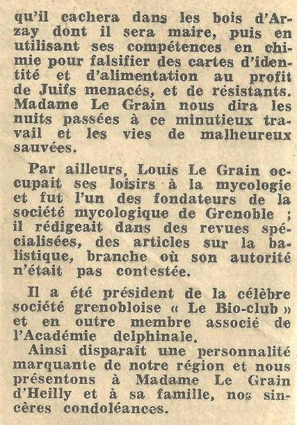 Remerciements Mme de Pontfarcy (née Françoise Le Grain)