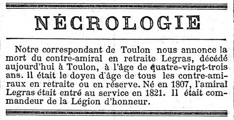 Fils de François LEGRAS, Capitaine de vaisseau (1768 - 1837) et de