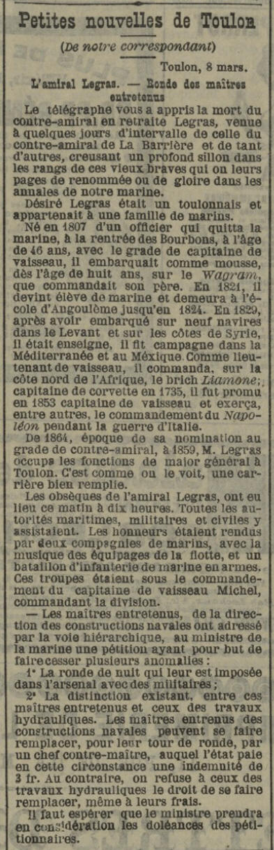 Au 1er janvier 1863, Major de la Marine à TOULON.