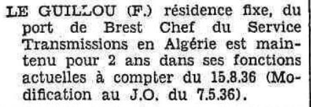 d'Honneur le 11 janvier 1936; alors Chef du Service des