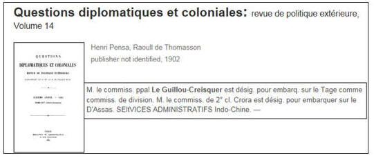 Au 1er janvier 1879, Officier d'administration sur l'aviso "BISSON",