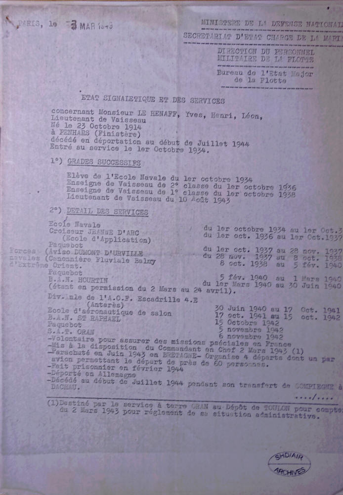 missions spéciales en France et fut parachuté en Bretagne le 15 juin