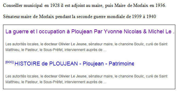 Officier de la Légion d'Honneur le 3 mai 1955, exerçant à MORLAIX.