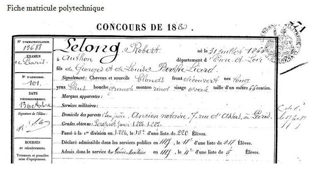Élève de l'École polytechnique le 1er novembre 1885, opte pour le