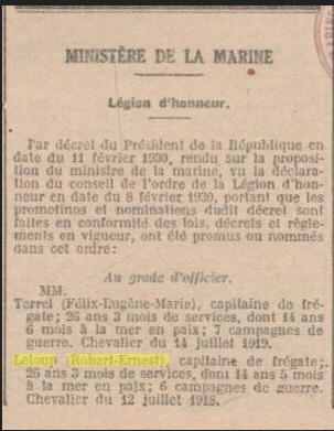 l'École Supérieure de la Marine à PARIS, promotion 1921.