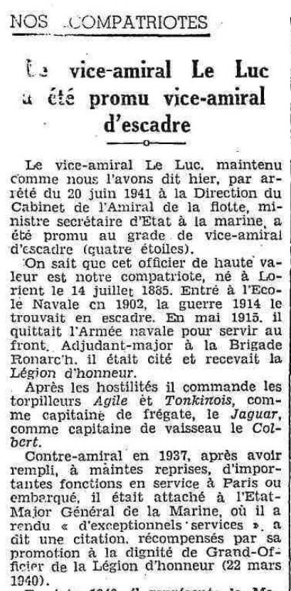 Extrait Le Nouvelliste du Morbihan / 28 juin 1941